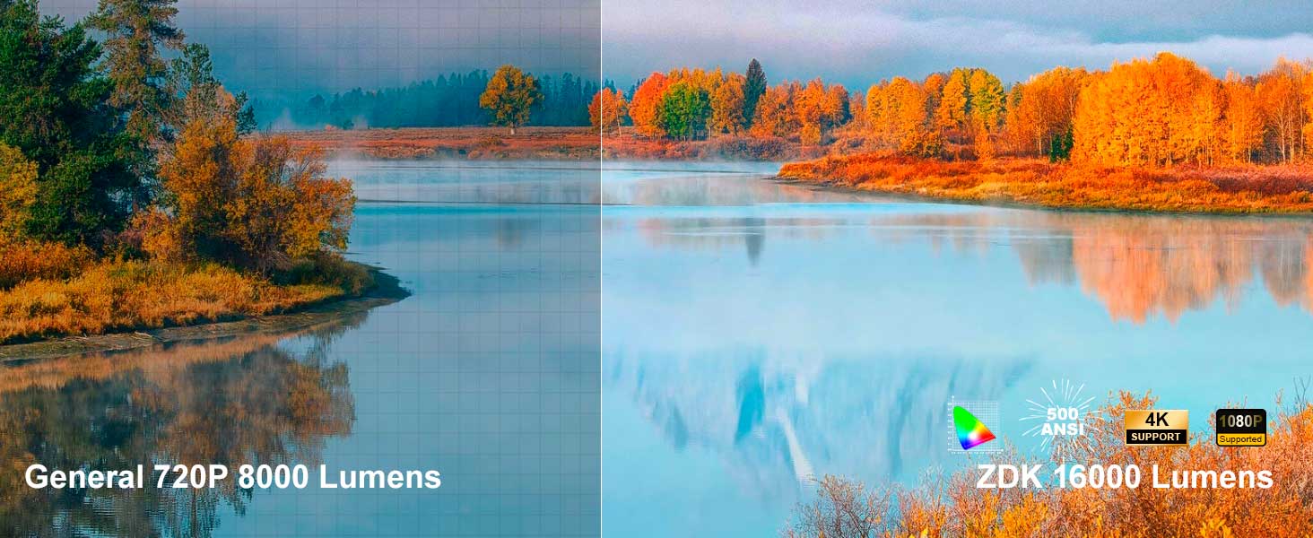 Cine portátil en casa: el proyector ZDK proporciona un área de visualización mínima de 35 pulgadas a una imagen máxima de 300 pulgadas. Permite una excelente reproducción de películas, programas de televisión, videojuegos y se puede configurar convenientemente. Nuestro método de iluminación uniforme 2024 recientemente mejorado proporciona la experiencia visual óptima, asegurando que no haya áreas oscuras a lo largo de los bordes de la imagen mostrada